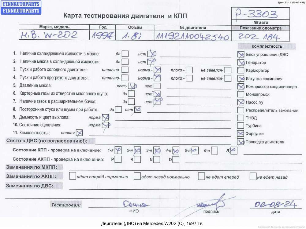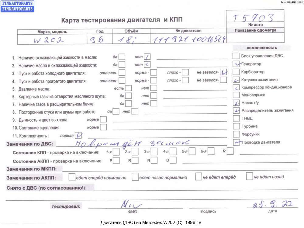 | Двигатель | Mercedes-Benz C-CLASS (W202) | 1996; Бензин; 1.8; 111.974; Седан; ; 111.974 Из Германии; 111.974 |  | ||