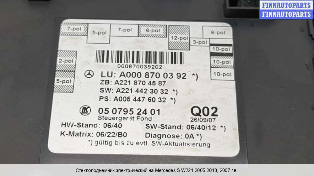 Компания FINNAUTOPARTS занимается продажей контрактных (б/у, бывших в употреблении) запчастей для иномарок. В нашей компании продаются только оригинальные запчасти из Европы, Японии и Кореи, которые не имеют пробега по РФ. Если вы хотите приобрести стеклоподъемник (задний левый) для а/м Мерседес Бенц С (221 кузов), смело обращайтесь в нашу компанию. Все наши менеджеры — профессионалы своего дела, и с удовольствием помогут вам купить запчасти, в том числе, стеклоподъемники задние левые, на Mercedes-Benz S (W221) и другие автомобили.