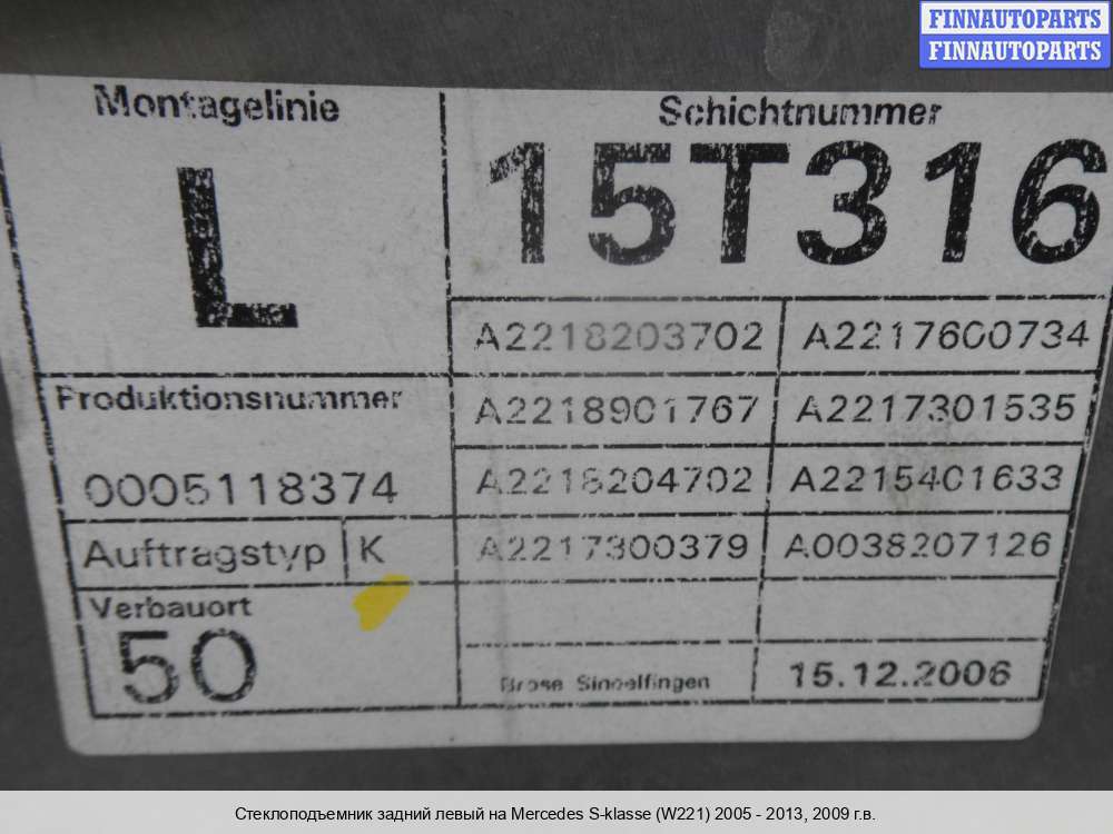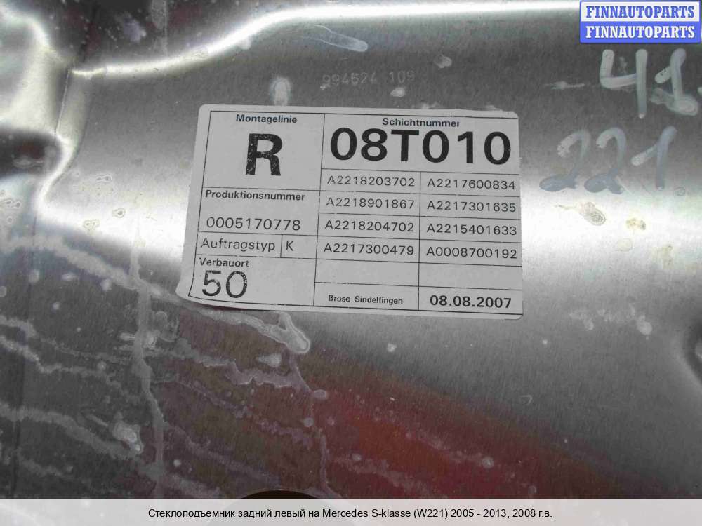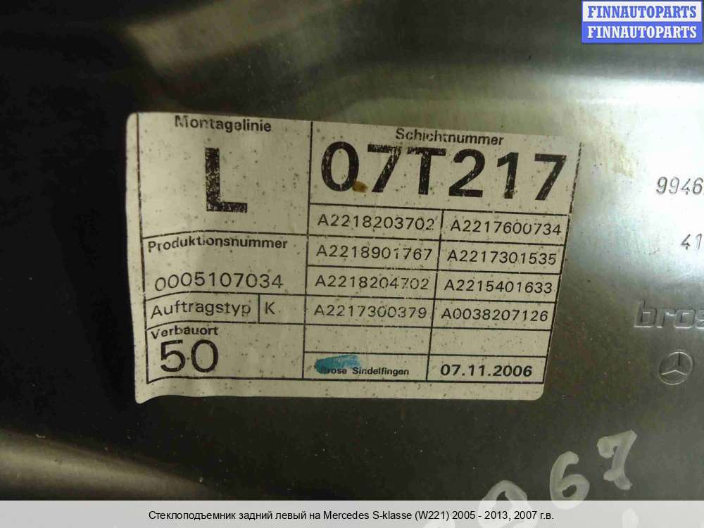 | Стеклоподъемник задний левый | Mercedes S-klasse (W221) 2005 - 2009 |